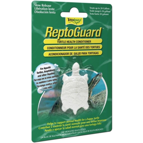 Tetrafauna Happy Turtle ReptoGuard is a medicated sulfa block that treats water in turtle tanks and amphibious terrariums to help control common diseases. Slowly dissolving block is ideal for use with aquatic turtles, amphibians, and other reptiles.